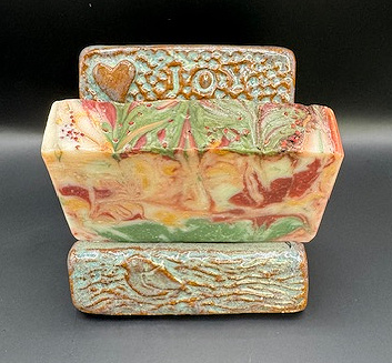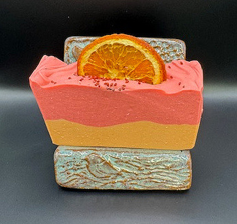 I have been wanting to add a slice of orange to a soap for a while and it was fun to make it happen. It is a spicy cinnamon scented soap and the two colors are wonderful. I hand sliced and dried the orange slice on each soap. I also added dried cranberry seeds to the top of the soap. I really liked the look of the orange slice and may be making a key lime pie soap and add a slice of lime on top! Stay tuned!